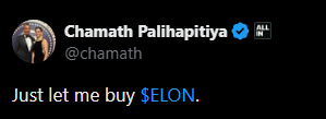 The man who predicted the success of Elon’s ventures, with 1.9m followers on X, recently posted “Just let me buy $ELON”